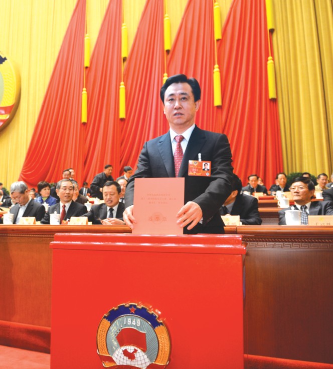 许家印委员在全国政协十二届一次会议第四次全体会议上投下庄严的一票
