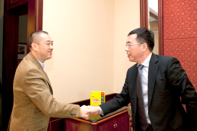 夏海钧总裁与上海三菱电梯万忠培总裁(右)亲切握手