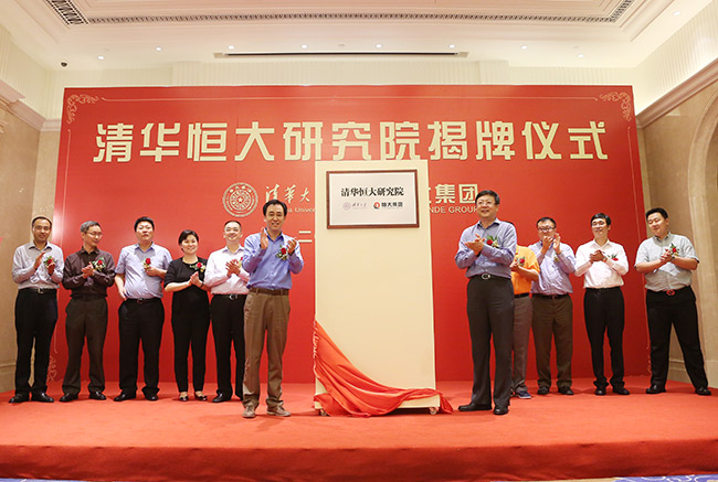 清华大学校长办公室主任金勤献,清华大学校长助理杨斌,恒大董事局副主席、总裁夏海钧,常务副总裁谈朝晖等出席了揭牌仪式。