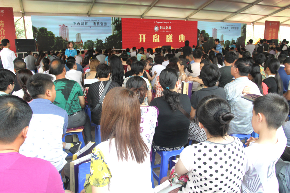 开盘当日,现场气氛热烈,人气爆棚。合肥恒大中央广场的样板房用了近万对鞋套,两百多桶饮用水,三百多箱瓶装水,2万多个纸杯,发放销售资料超万份。而平顶山恒大名都开盘当日,很多客户一大早就排队签到,等待开盘选房。