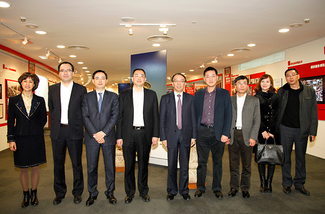 夏海钧总裁(左二)一行与北京银行行长张东宁(左四)参观北京银行展厅