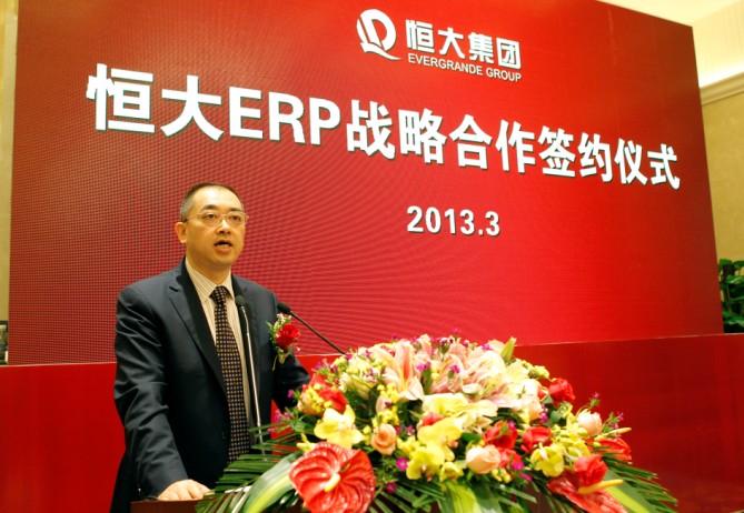 首先我谨代表SAP,感谢恒大选择SAP作为恒大未来五年、十年甚至更长时间的集团信息化建设平台。